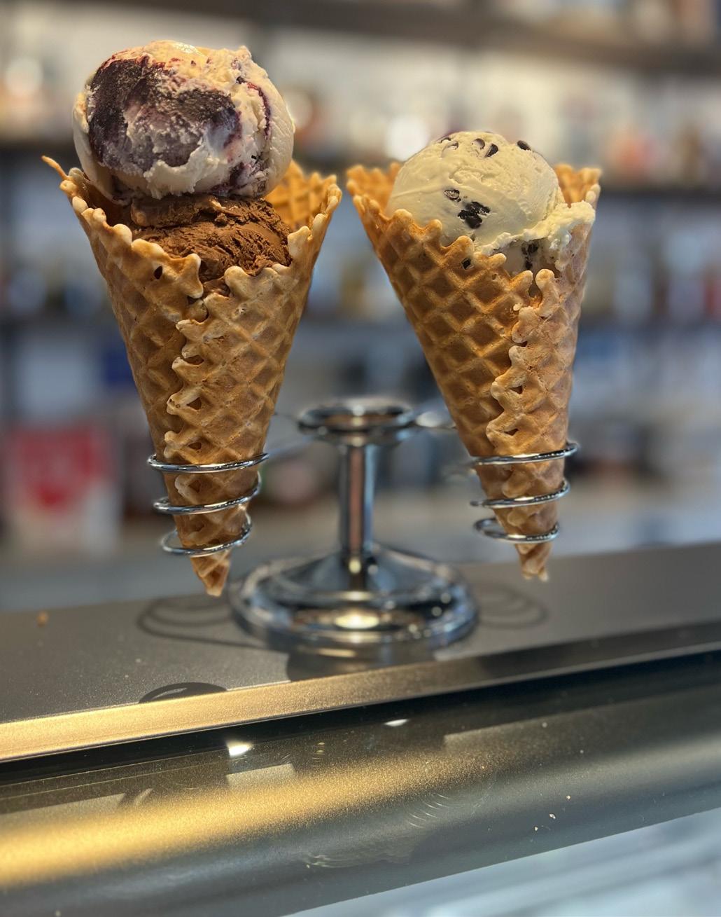 HOUSEMADE WAFFLE CONES DAILY WHILE SUPPLIES LAST. DOUBLEOR SINGLE-SCOOP — ANY FLAVOR INCLUDING ROCKY ROAD, MINT CHIP, AND HUCKLEBERRY CRISP.