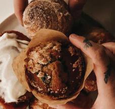 Hospitality and local! Stop by for a cruffin, rolls, breads – all baked daily. Cozy seating, coffee, and sandwiches, too.