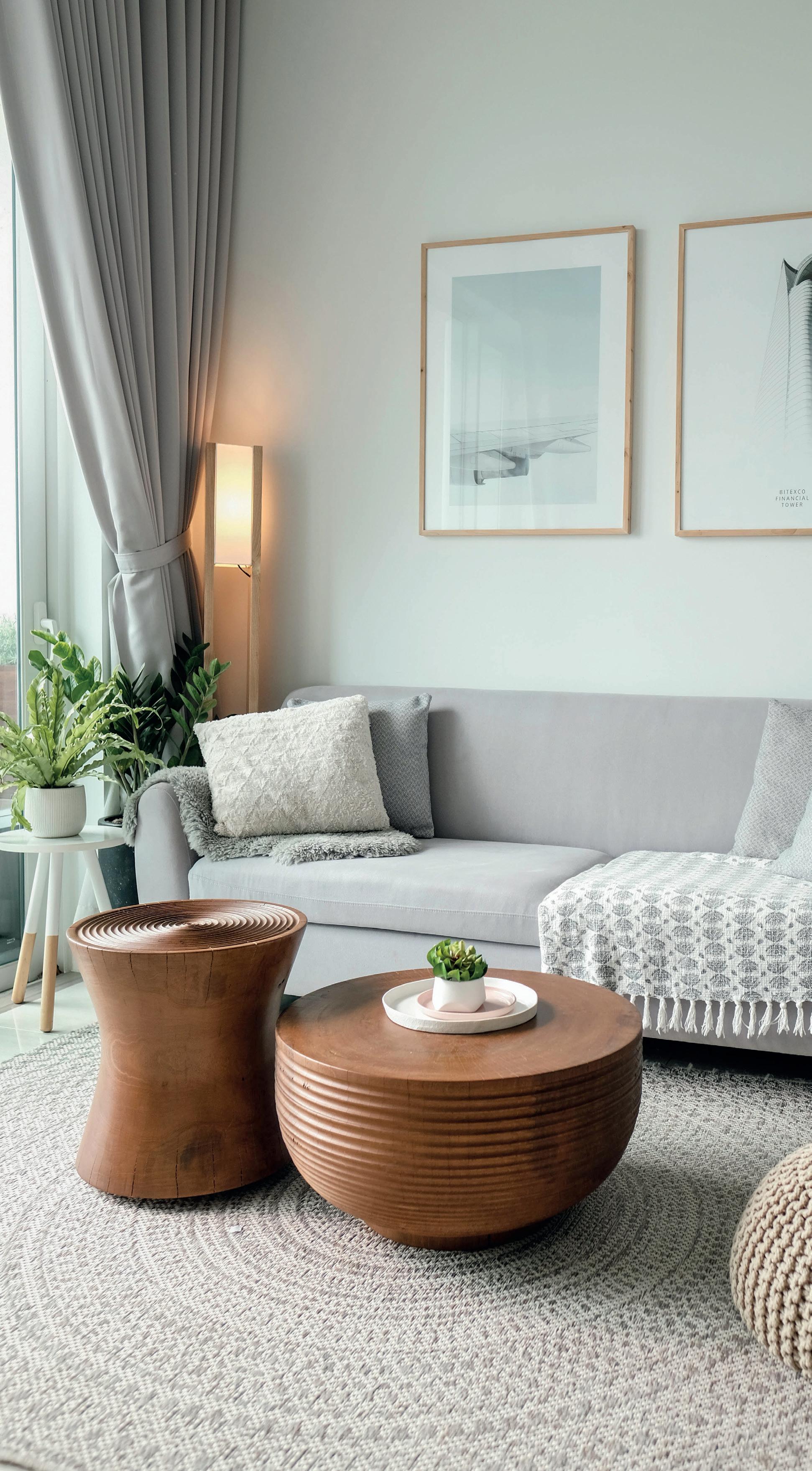 colours in lighter tones (think accessories, floor coverings, curtains, etc), which also makes the deeper colour pop and stand out.