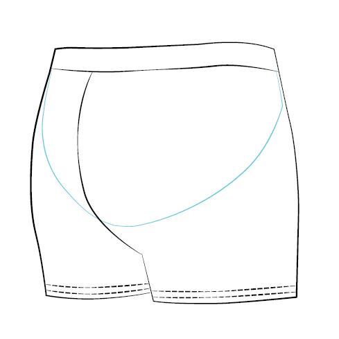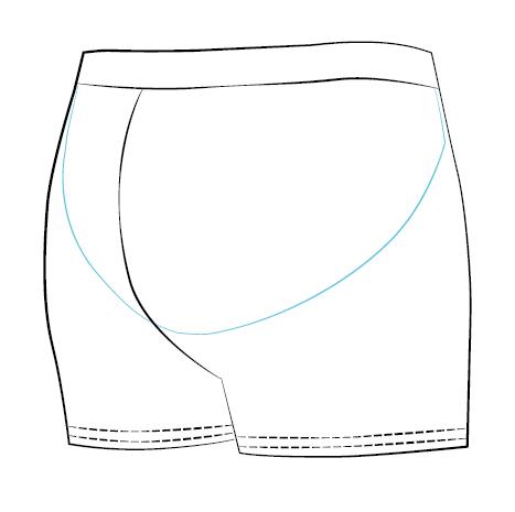 Shorts with a belt, gathered in the back giving a „push up” effect, optically enlarging the buttocks Шорты с поясом, собранные сзади, дающие