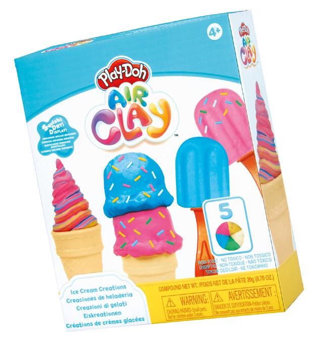 The Play-Doh Air Clay from Creative Kids (creativekids com) allows kids – and adults! – to safely transform ideas into compound reality as they imagine, sculpt and let dry spectacular creations. From a favourite dinosaur-turnedbackpack-keychain to pizza or ice cream creation, the possibilities to create a fabulous keepsake are endless.