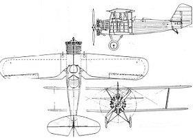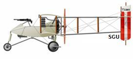 Avión biplano y biplaza británico Caza bombardero de la 1ra G.M. Armamento: una ametralladora Vickers de 7.7mm de disparo frontal fija en la parte superior del fuselaje, 1 o 2 ametralladoras Lewis de 7.7mm. móvil, en la cabina del copiloto.
