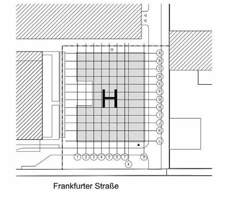 +0.00 +1.00 +0.00 +1.00 OBERKANTE FERTIGBODEN (OKFB) UNTERKANTE FERTIGDECKE (UKFD) OBERKANTE ROHBODEN (OKRB) UNTERKANTE ROHDECKE (UKRD) TÜRNR. (ENTSPR. RAUMNR.) MATERIAL ANFORDERUNG GEWERK-INHALT DETAILNUMMER GEBÄUDE A TU-200 001 226.2 HT30 U = 15.50 m UMFANG +1.00 +1.00 RAUMNUTZUNG.RAUMNUMMER BLATTGROESSE [mm] 594 841 (DIN A1) ±0.00 = 123.37m ü. NHN LAGEPLAN PROJEKT F5 Frankfurter Straße 5, 65760 Eschborn Neubau einer Beherbergungsstätte BAUHERR GENERALÜBERNEHMER (AG) G & O Gateway Gardens Erste GmbH Co. KG Speicherstraße 55, 60327 Frankfurt am Main EIN UNTERNEHMEN DER UND DER Groß & Partner Grundstücksentwicklungsgesellschaft mbH Bockenheimer Landstr. 47 60325 Frankfurt a.M Tel: 069 360095 -100 Fax: 069 360095 -300 OFB Projektentwicklung GmbH Speicherstraße 55 60327 Frankfurt a.M Tel: 069 91732 -01 Fax: 069 91732 -799 Gesichtet auf Bauherrenbelange und unter Beachtung der Eintragungen Wiedervorlage wie gesichtet zur weiteren Planung/Ausführung freigegeben (Die Haftung des Planverfassers für die Mängelfreiheit seiner Planung wird durch die Freigabe nicht eingeschränkt) UNTERSCHRIFT DATUM UNTERSCHRIFT DATUM UNTERSCHRIFT DATUM ARCHITEKTUR GENERALUNTERNEHMER FACHFIRMA Hanauer Landstraße 287-289 D-60314 Frankfurt Main Tel: +49 (0) 69. 94 43 94-0 Fax: +49 (0) 69. 94 43 94-38 GOB Projektentwicklung Fünfte GmbH & Co. KG Speicherstraße 55,60327 Frankfurt am Main UNTERSCHRIFT DATUM FACHPLANUNG UNTERSCHRIFT DATUM BAUHERR (bzw. AG) Mit der Unterschrift bestätigen die Unterzeichner, dass die dargestellte Leistung mit allen Fachdisziplinen abgestimmt ist und allen Auflagen bzw. der BAB entspricht. Mit der Unterschrift bestätigen die Unterzeichner, dass die dargestellte Leistung mit allen Fachdisziplinen abgestimmt ist und allen Auflagen bzw. der BAB entspricht. PHASE PLANTYP EBENE/BEZUG GEWERK REFERENZ ARCHITEKTUR REFERENZ FACHPLANUNG PLANNUMMER PHASE BAUTEIL PLANTYP INDEX GEWERK EBENE/BEZUG LAUFENDE NUMMER REFERENZ ANDERE BAUTEIL MASSSTAB PLANSTATUS PROJEKTNUMMER INTERN GEZEICHNET INDEXDATUM PLANBESCHREIBUNG PHASE BAUTEIL PLANTYP INDEX GEWERK EBENE/BEZUG LAUFENDE NUMMER PLANNUMMER PLANINHALT AA AA 4 ARC H LP DA_ 250 33255 GENEHMIGUNGSPLANUNG H 1:250 LAGEPLAN DACHAUFSICHT ARCHITEKTUR FREIGABE JD 20.03.2020 4 ARC H LP DA_ 250 Lageplan INDEX PLANHISTORIE DATUM NAME AA STAND BAUANTRAG 20.03.2020 JD