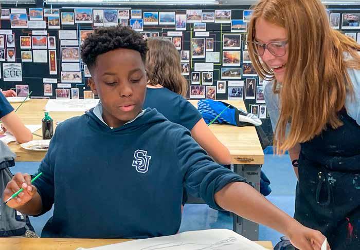 The Upper School Visual Arts program develops a young artist’s technical and conceptual abilities through an integrated curriculum that emphasizes connections between the visual arts and the broader educational environment. The program fosters the development of independent creative practices, traditional skill building, craftsmanship, creative problem-solving, positive studio collaboration, and perseverance through a range of experiences, which all build a foundation for deeper understanding and appreciation of the arts as students prepare for their capstone AP Portfolio experience.