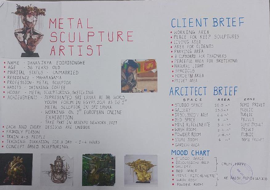I'm an architecture student studying architecture at the SLIIT School of Architecture, where I earned my BSc in Architecture. During my first year of architecture school, I gained invaluable experience by working on projects of various styles. Thanks to teamwork and independent project management, I was able to completely comprehend the design phases and project implementation. There, my urge to develop personally and to produce original architectural designs emerged. It was my ambition to work in a profession that required both unique and analytical thinking. By designing spaces that have a positive impact on society, I hope to contribute to shaping it as an architect. I began my career in 2022 as a student architect. This PORTFOLIO comprises the data about the design projects activities that were carried out.