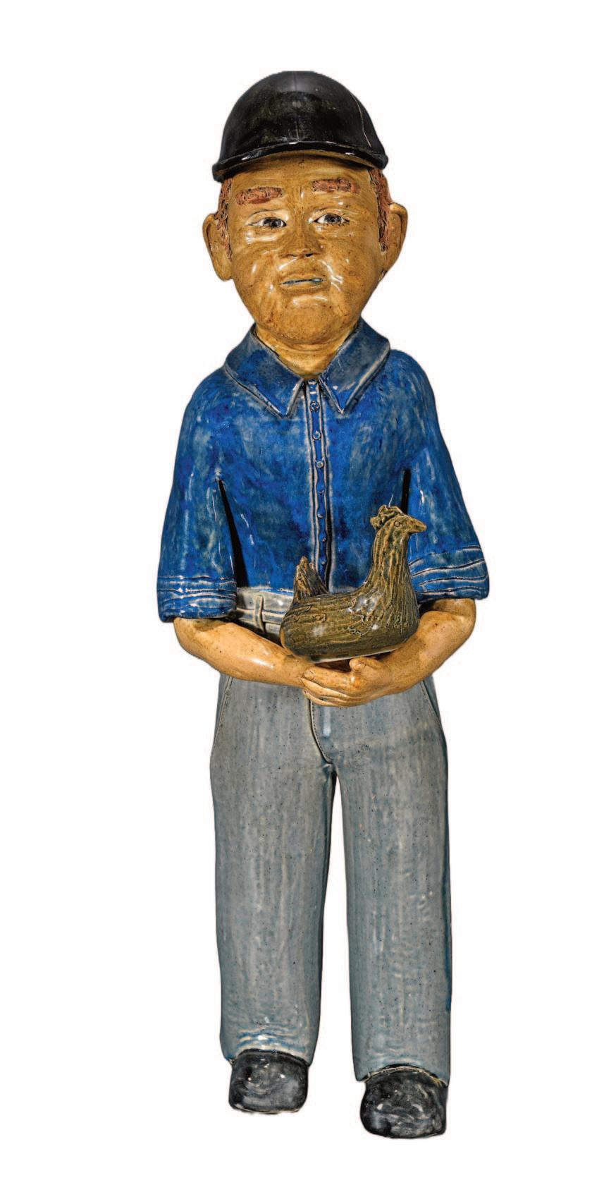 899. Lin Craven. Old Country Man. Signed. Pottery head with mixed media fiber body. Great condition. 44" h. Est. $100-200. Ship: $65