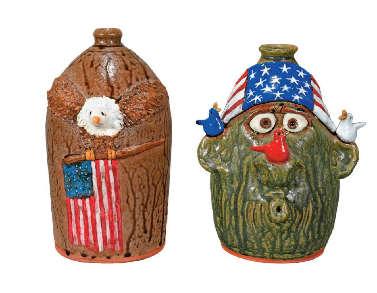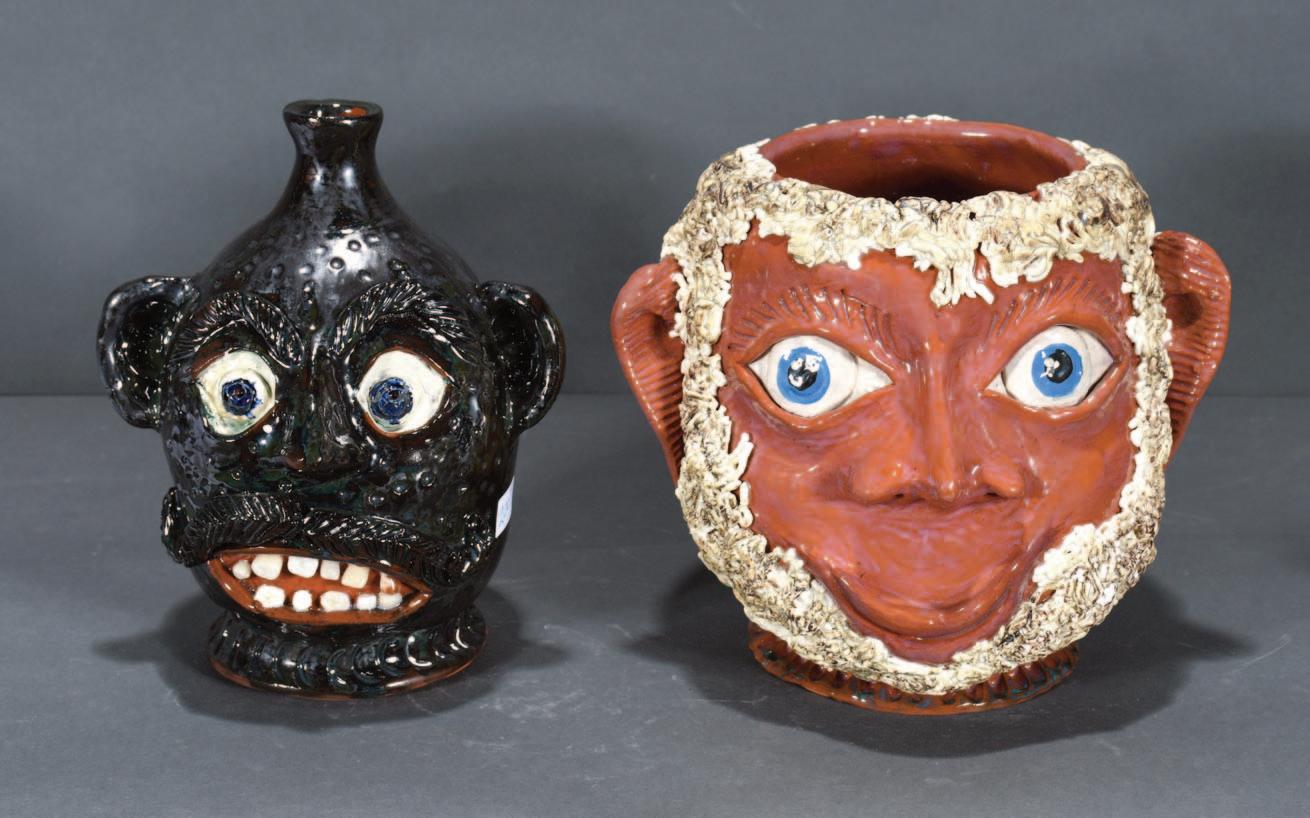 Three Works, Two decorated works and a small face jug. 1997-2002. Signed and dated. Mint condition. Largest is 13" h. Est. $200-300. Ship: $150