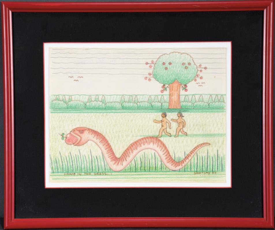 Tom explained that someone thought that Clementine needed to date her paintings so Dr. Bob Ryan taught her how to write the date. It became a problem the next year when she didn’t change so she stopped dating the paintings. Est. $1,000-3,000. Ship: $65
