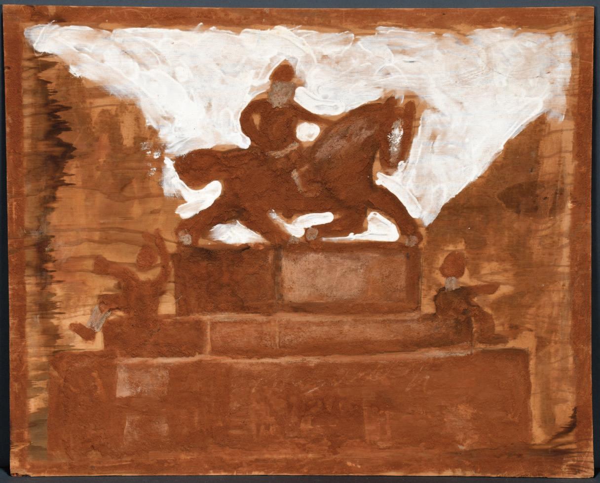 Not signed. Titled. Watercolor, graphite, and colored pencil on brown paper.