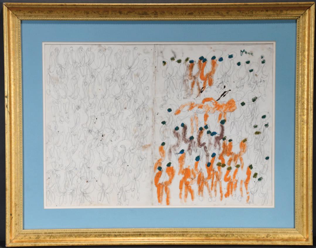 97. Purvis Young. Saints Marching. Signed. Paint on found paper. Excellent condition.