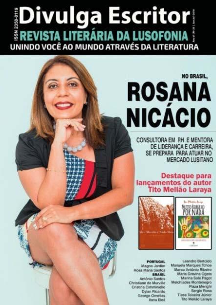 O que dizer de uma revista que tem poucos anos de vida e já é um sucesso, tanto nacional quanto internacional mente? Estamos falando da Divulga Escritor, uma Revista que enobrece a literatura lusófona. Nascida em 2013, tendo Shirley M. Cavalcante como jornalista e coordenadora deste projeto múltiplo e eficaz, o periódico tem se destacado por seu estilo ímpar e inovador. Prezando a qualidade e o profis sionalismo, a Revista é um polo aglutinador que se expande para novos horizontes, trazendo à tona novos talentos e pro jetos voltados para o mercado editorial.
