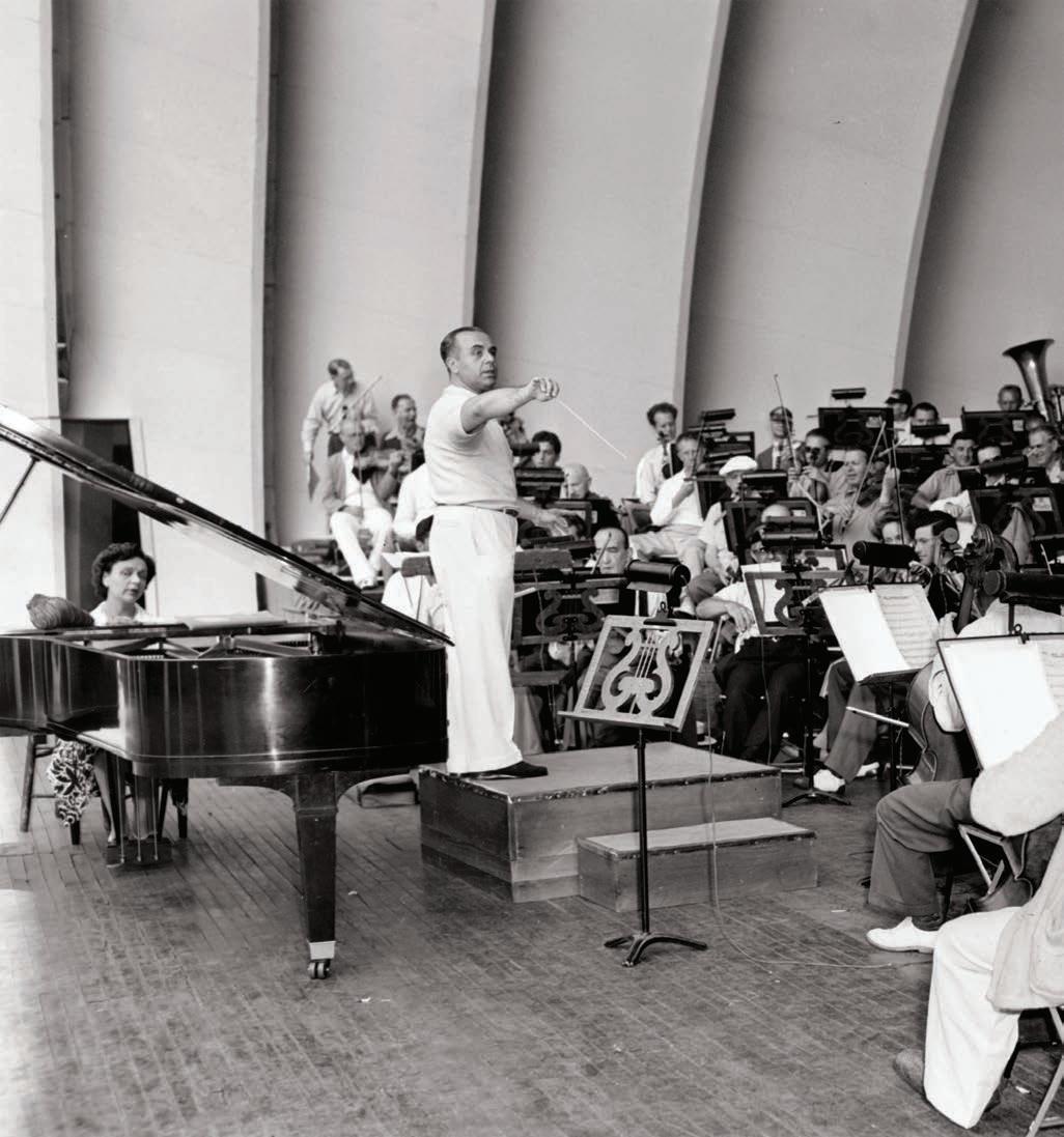 José Iturbi conducting with his sister Amparo at the piano in rehearsal - Rachmaninoff Piano Concerto #2