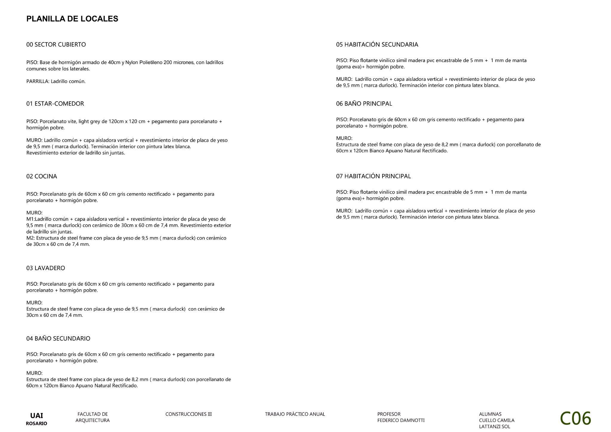 Legajo técnico de una vivienda- Trabajo integrador, Construcciones III.