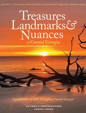 We have a feature about local photographer and author, Laurie Lohne. Laurie has provided us with some amazing cover photos over the past year and her latest book Treasures, Landmarks & Nuances of the Georgia Coast, is absolutely stunning. I bought a copy and you should, too. You can learn about her and see a sampling of her work starting on page 12.