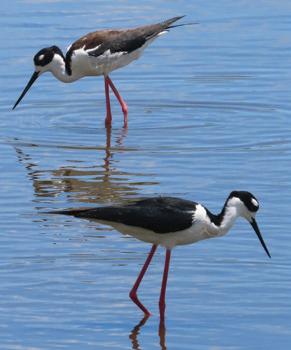 Black-necked stilts have the longest legs of any bird in proportion to their body-size, second only to flamingos. This allows them to feed in deeper water than most birds their size.