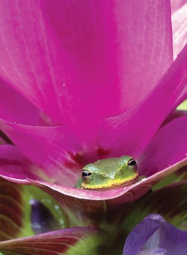Opposite page top, L-R: Just a happy little tree frog hanging out in a flower!