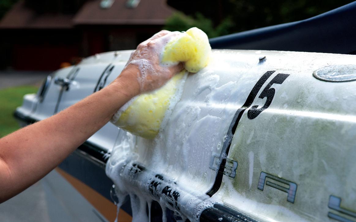 ◆ Rinse your boat with freshwater after every trip. It will go a long way in keeping the boat clean, and can prolong the periods between using detergent products.