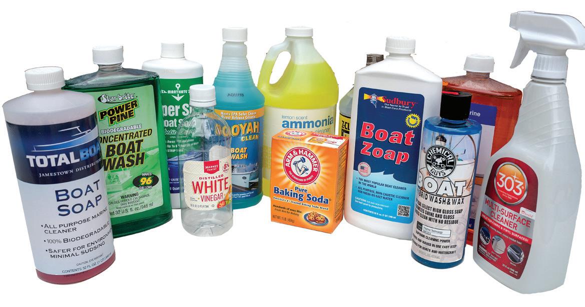 boat-owning and boat-cleaning experience, to the majority of cleaners on the market that make no claim to be less environmentally toxic. So, use these high-scorers with confidence, use the manufacturer’s recommended amount, minimize any product run-off, and enjoy happy times aboard, knowing you’re doing your part to keep our aquatic playground as clean as possible.