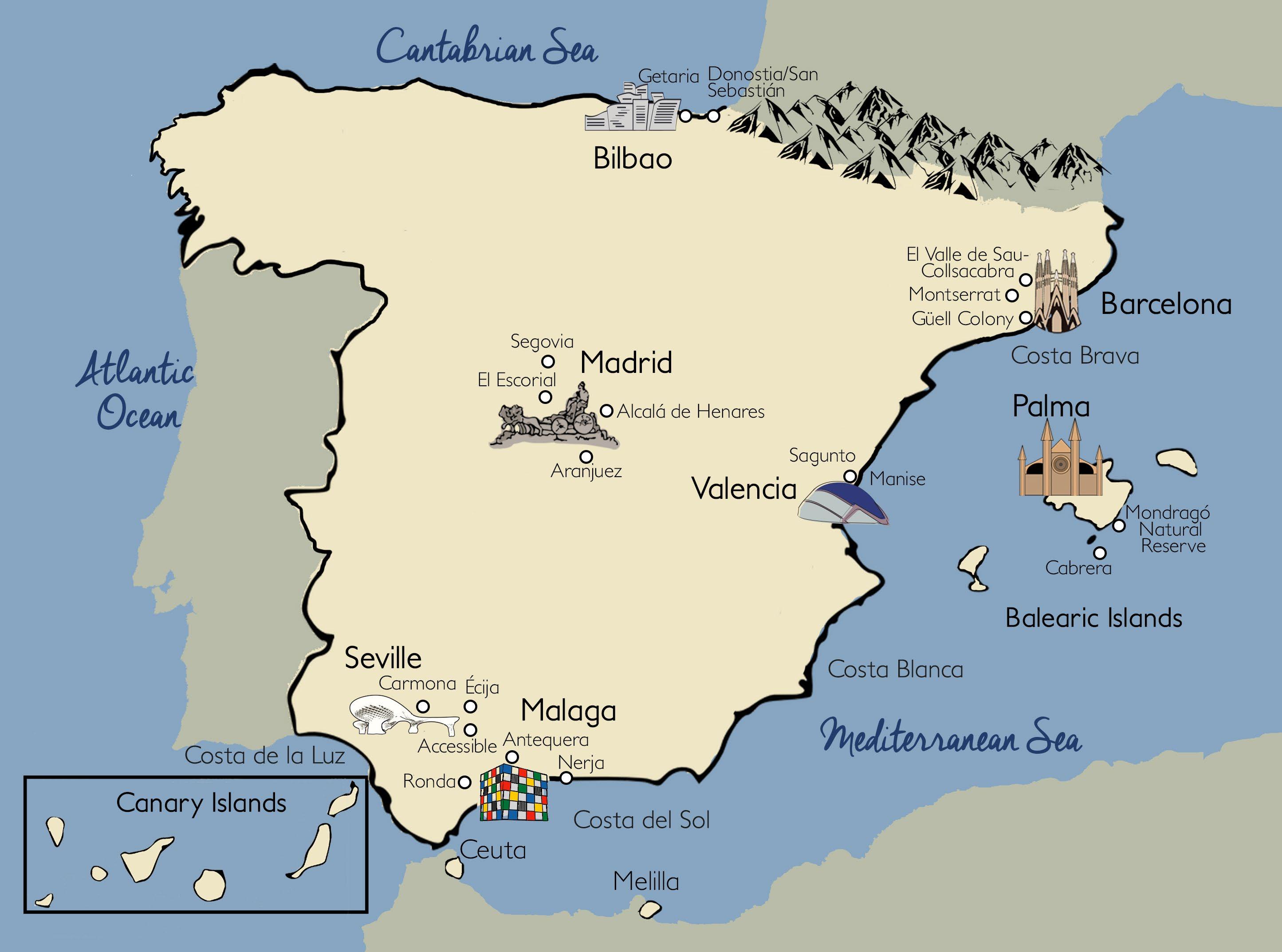 Take a flight and get from anywhere in Europe to cities like Madrid, Barcelona, Seville, Malaga, Bilbao and Palma de Mallorca in just a few hours. Once in Spain, it's easy to make short trips from one city to another by plane or highspeed train