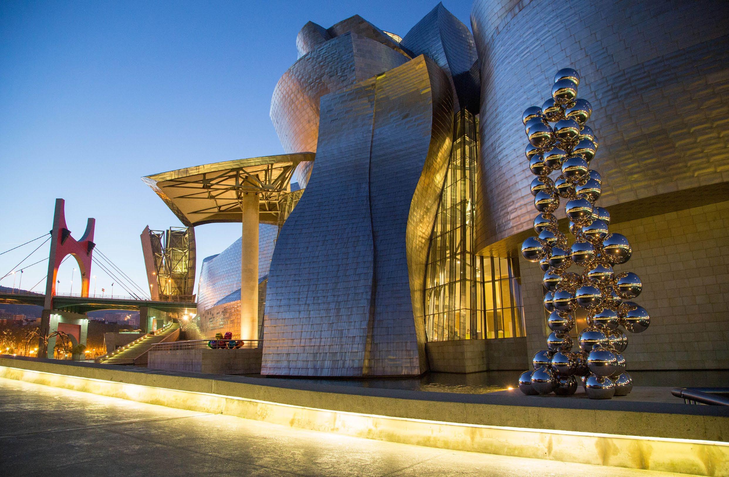 skyline, such as the Iberdrola Tower and the sculpture by Anish Kapoor that adorns the museum's exterior.