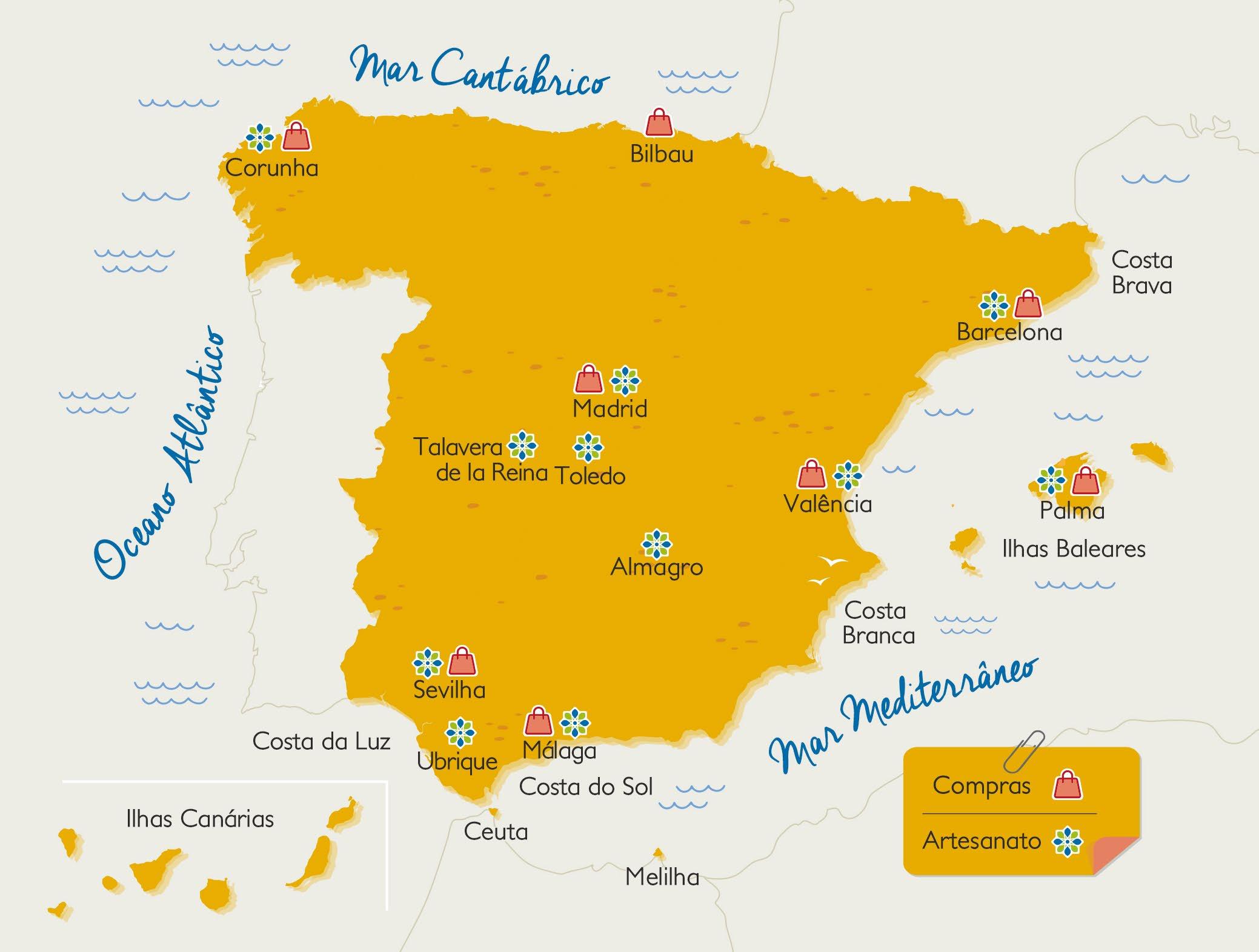 Encontra de tudo enquanto passeias pelas nossas cidades, desde firmas de luxo, até criações únicas fabricadas por artesãos locais. Faz tudo à tua maneira, visita pequenos ateliers, procura em mercados vintage ou percorre grandes centros comerciais. E degusta sempre o melhor da terra: saboreia Espanha nos seus requintados produtos gourmet