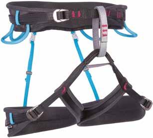 L’imbragatura è caratterizzata dall’innovativa costruzione Smart Webbing Technology che, combinando poliestere e fibra monofilamento, garantisce sia un’uniforme distribuzione del peso sull’intera superficie di cintura e cosciali sia una notevole traspirabilità. Ciò si traduce in leggerezza e comfort eccezionali, a cui contribuisce anche l’interno in morbido mesh 3D a sua volta traspirante. I quattro anelli portamateriale sono differenziati per la massima funzionalità: quelli anteriori sono preformati per facilitare l’aggancio e lo sgancio dell’attrezzatura, quelli posteriori sono più flessibili e compatti. Non manca un anello supplementare posteriore, realizzato in cordino semirigido per non intralciare se non utilizzato.