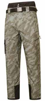 Pantaloni da uomo per il freeride realizzati con tessuto ela sticizzato, riciclato, impermeabile e traspirante. Le cuciture sono nastrate per una protezione completa e sono dotati di ghette antineve e cerniera sull’orlo. Hanno un design a vita alta, la cintura è rimovibile con fibbia in metallo, la parte superiore delle gambe è foderata in pile per trattenere il calore e le ginocchia sono sagomate ergonomicamente. Il tessuto interno nella zona delle caviglie e sugli attacchi è resistente all’abrasione. Godono inoltre di orlo con risvolto per quando gli scarponi non sono indossati e di molteplici tasche.