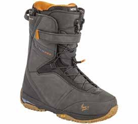 Come successo per la tavola e l’attacco, anche allo scarpone simbolo di casa Nitro è toccato l’upgrade “Pro” con dei dettagli voluti questa volta diretta mente da Marcus Kleveland che ne firma questa prima versione. Questa calza tura si differenzia principalmente dal Team “normale” per la strap sulla caviglia e il power tongue stifner rimovibile per irrigidire il linguettone frontale. Tra le caratteristiche comuni con il suo fratello minore, invece, la suola in VIbram Ecostep, che oltre a garantire grip in tutte le condizioni, è realizzata con il 30% di gomma riciclata, il sistema di allacciatura rapida TLS 5, l’ammortizzazione AIR nel tallone e il sottopiede Ortholite anatomico.