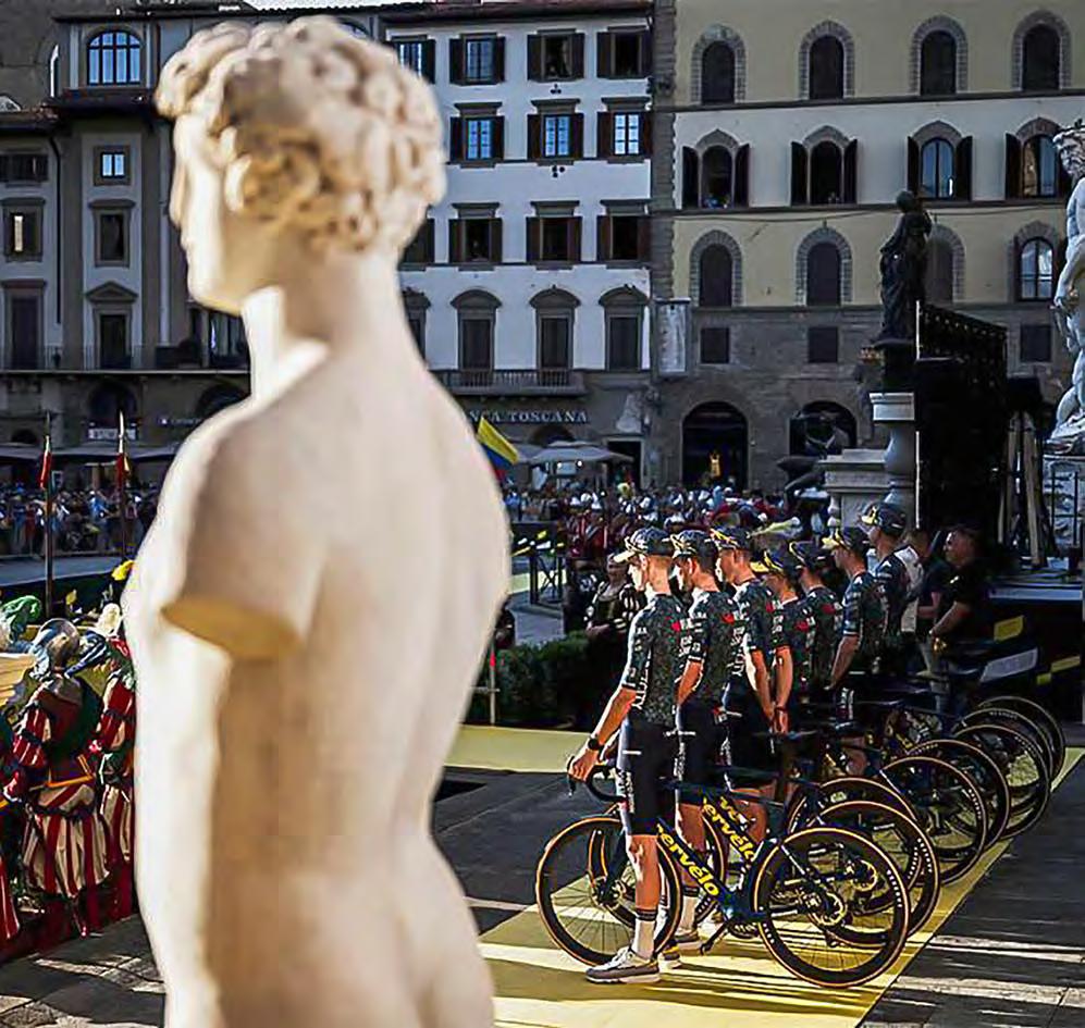 Abbiamo avuto la fortuna di vederlo pedalare nelle ultime settimane tante volte sulle nostre strade. Arrivando pure, guarda i casi del destino, proprio nel centro di Bologna… per conquistare alla seconda tappa della Grande Boucle quella maglia gialla che non avrebbe più mollato. In un crescendo felliniano di prestazioni sensazionali, andando a vincere il suo terzo Tour ed entrando nel novero dei “Magnifici 8” in grado di firmare una o più volte la storica doppietta Giro-Tour nello stesso anno (in compagnia, nell’ordine, di Coppi, Anquetil, Merckx, Hinault, Roche, Indurain e Pantani). Già, non è un refuso, vale la pena rimarcarlo: la 111esima edizione del Tour de France (terzo evento sportivo al mondo per copertura televisiva, dopo i Mondiali di calcio e le Olimpiadi) per la prima volta è partita dall’Italia. Con ben quattro tappe che hanno toccato tre regioni: Toscana, Emilia-Romagna e Piemonte.
