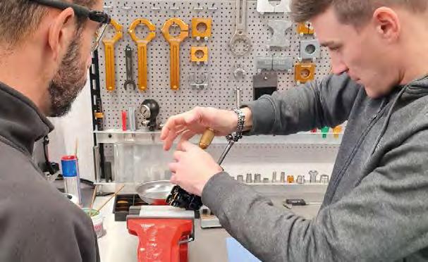 qui apposta perché il loro sogno era di lavorare con le bici. Potete quindi immaginare l’impegno e la passione che ci mettono. Ci sono anche dei ragazzi stranieri. Alcuni possono anche ricoprire più posizioni, ma cerchiamo il più possibile di rispettare quelle che sono le loro attitudini e abbiamo anche chi fa sia la guida che il meccanico. Tutti comunque, appena è possibile, vanno in bici e parlano inglese. Questi sono i due requisiti fondamentali, perché abbiamo una clientela all’80% di area DACH. La nostra squadra è abituata a darsi una mano a vicenda e l’ambiente che si è creato è molto bello e stimolante. Ognuno vorrebbe lavorare sulle bici, anche chi si occupa di altre mansioni. C’è sempre gente che vorrebbe unirsi a noi, trasferirsi a Finale e lavorare in questo settore. Ogni settimana abbiamo nuove persone che si propongono, l’ultimo è stato un ragazzo argentino.