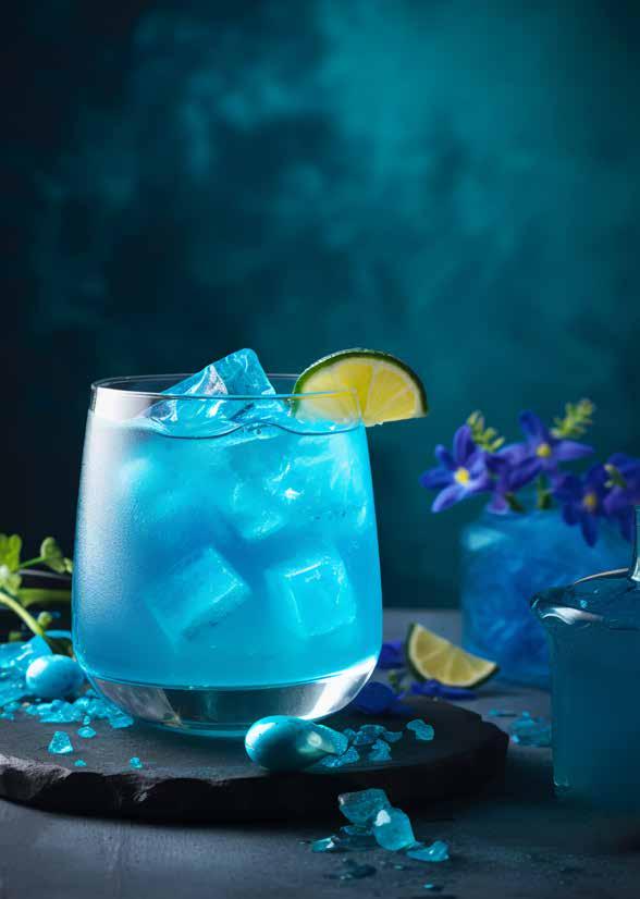 4 cl. Harlegin Mandarin gin og 2 cl. BARMIX Blue Curaçao hældes i et glas med isterninger. Fyld op med lemon sodavand og dekorer med friske bær.
