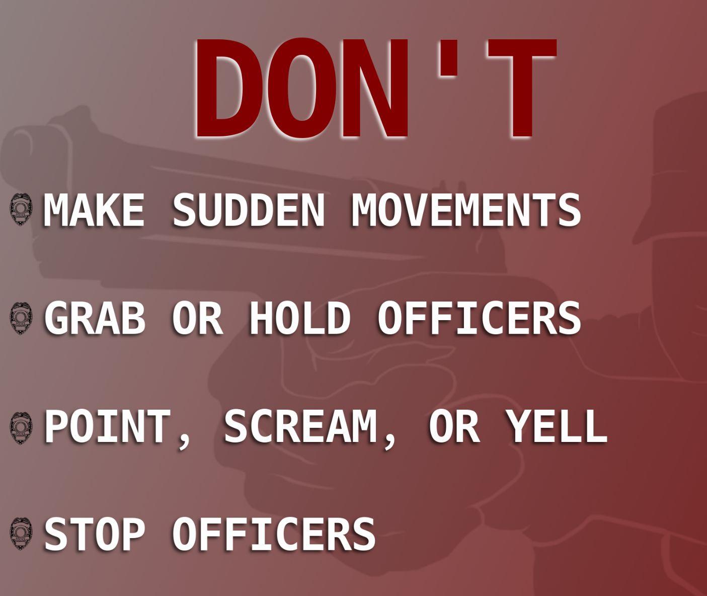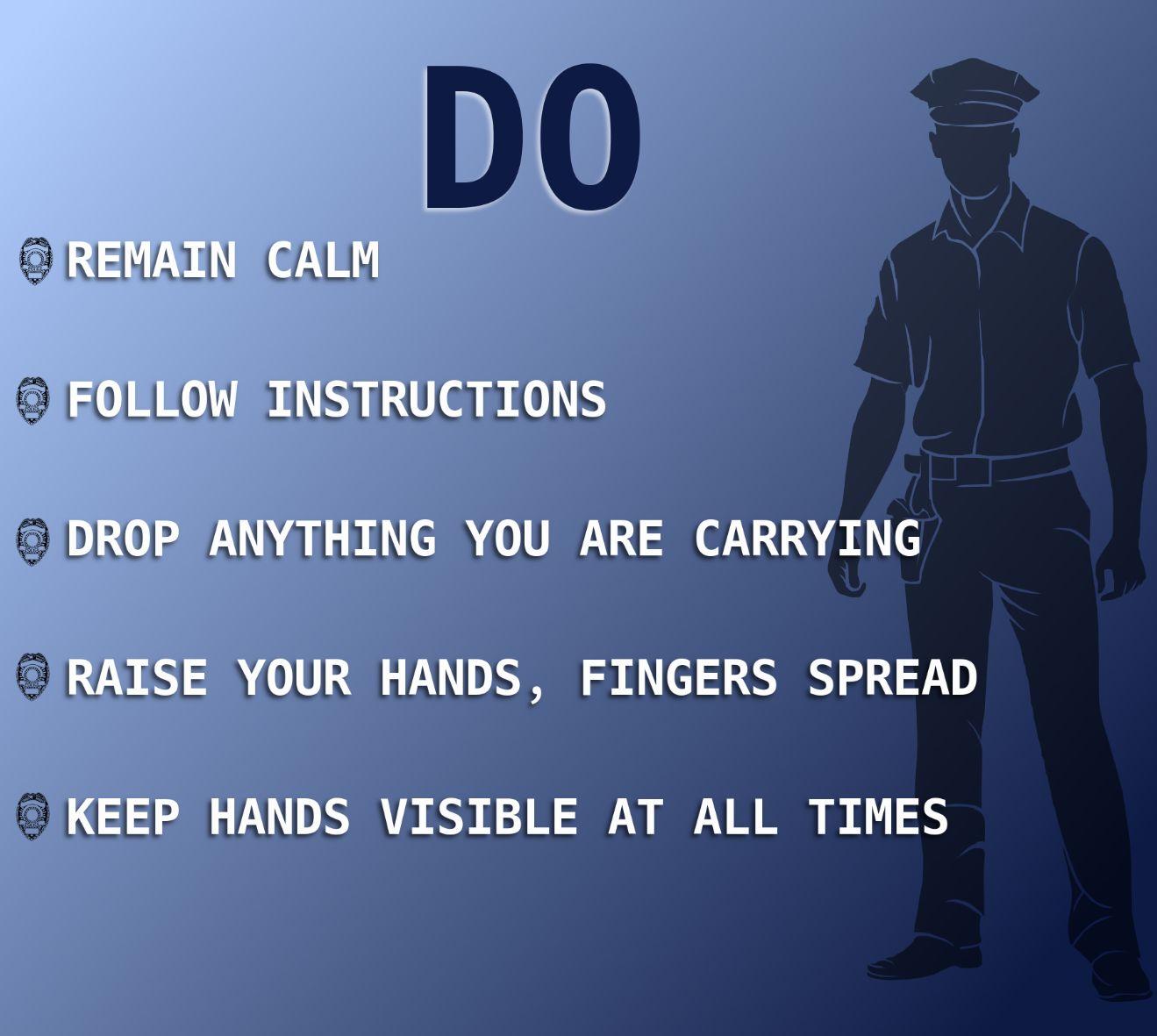 If you are given instructions by any law enforcement officer, follow them promptly and exactly. Take some time to review the Dos and Don’ts of how to react when law enforcement arrives on the next slide.