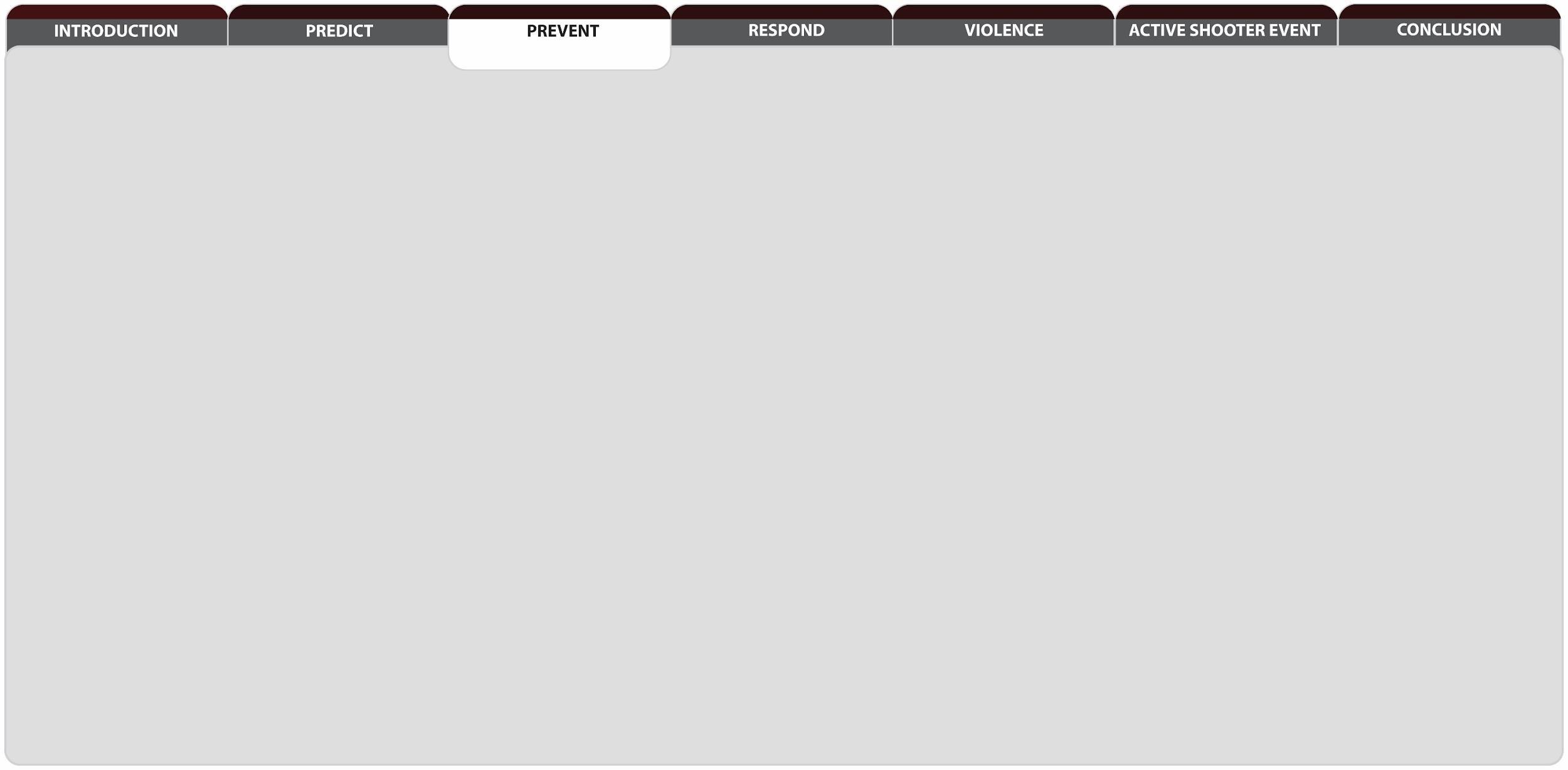 Now that you understand how to predict violent behavior, we can move into how to prevent it. By taking measures to prevent violent behaviors, you are ensuring the safety of everyone in your workplace. We’ll go over how to recognize and de-escalate dangerous situations, and steps you and the company can take to ensure a safe working environment.