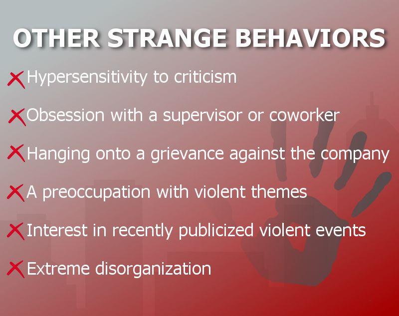 It bears repeating that no test or list of behaviors is positive proof that an associate, guest, or coworker will become violent. Rather, employers and employees should be alert to alarming behaviors that, mixed with other risk factors, could point to possible violence. No single behavior we have discussed, in and of itself, suggests a great potential for violence. Consider them all as a whole. Watch for many signs together, rather than just one or two.