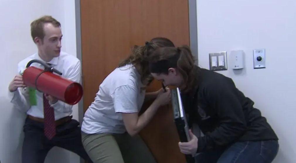Finally, act as aggressively as possible when confronting the active shooter. Scream, yell, and throw the objects you found. If you have larger items, you can use them to hit the shooter. The goal here is not to kill the shooter. Rather, you should try to distract and disarm them.