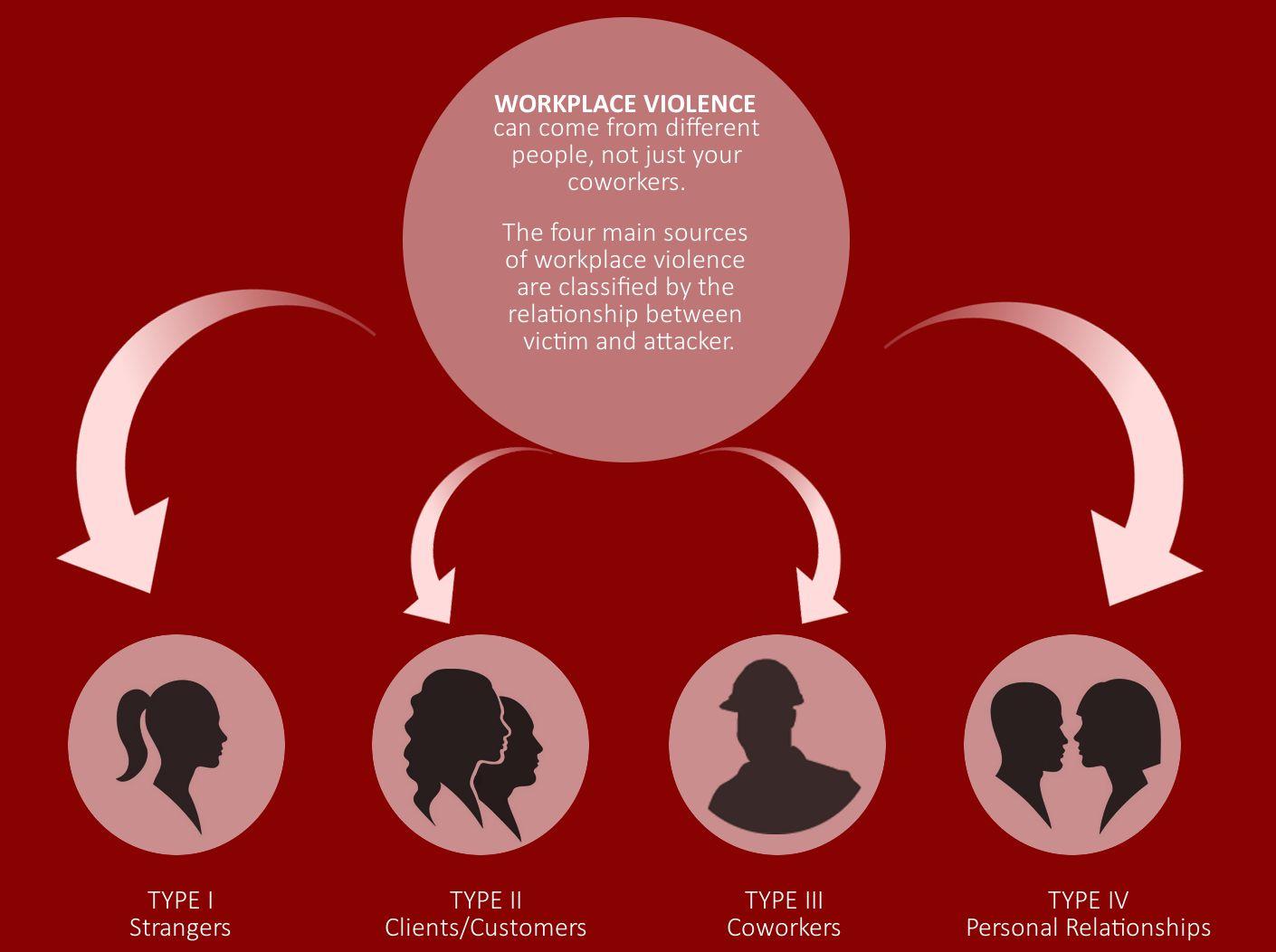 Violence in the workplace can be identified in four broad categories, which are listed to the left. Take a moment to look them over before we explore them in more detail.