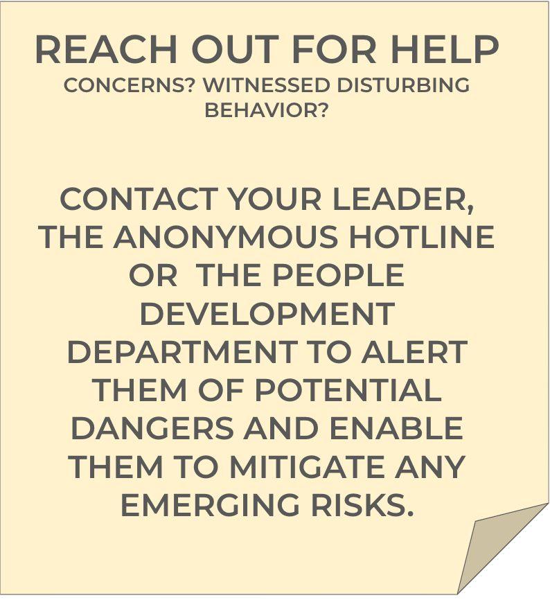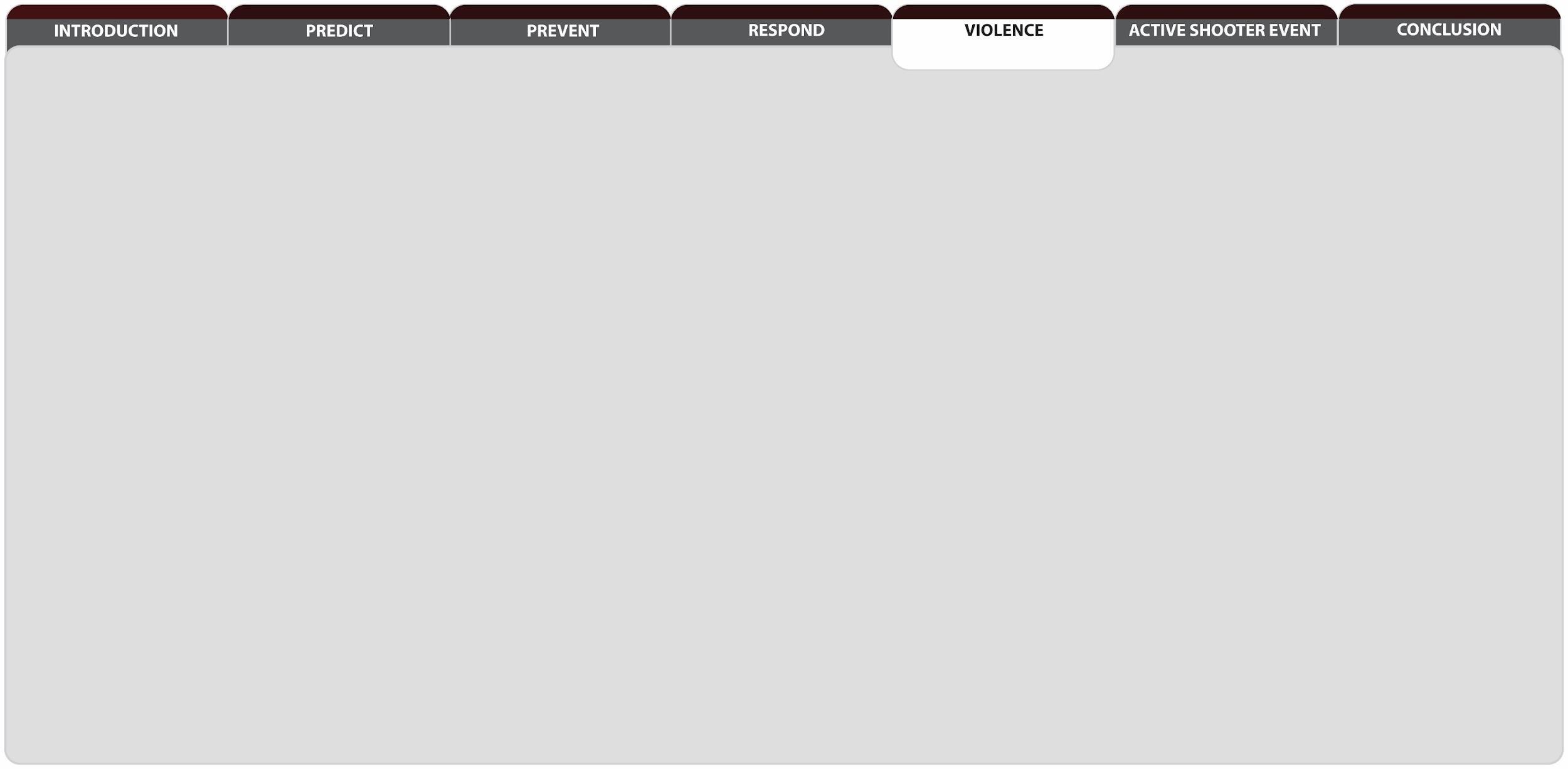 “I didn’t know,” is not an excuse for instigating or tolerating any type of violence in your workplace. You have been provided with this training so you can keep yourself safe, but also so you can recognize questionable behaviors around you and safeguard others.
