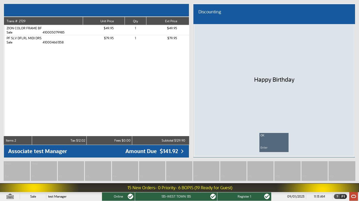 The HAPPY BIRTHDAY message will appear on the screen to show that the discount has been applied.