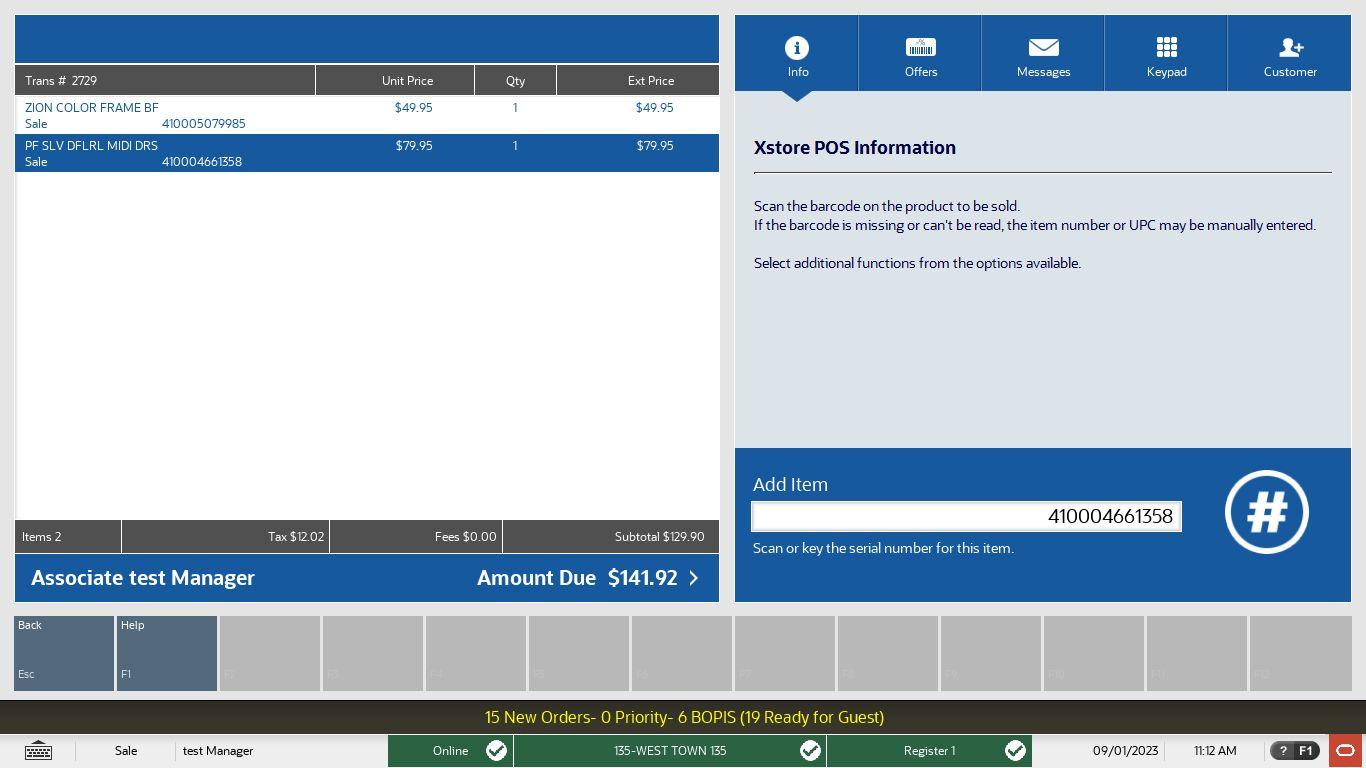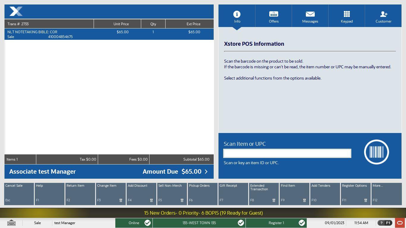 Scan or key in the UPC number of the items to be purchased. Promo/ sale prices will automatically ring up. When all items have been captured, click ADD TENDERS to progress to the payment screen.