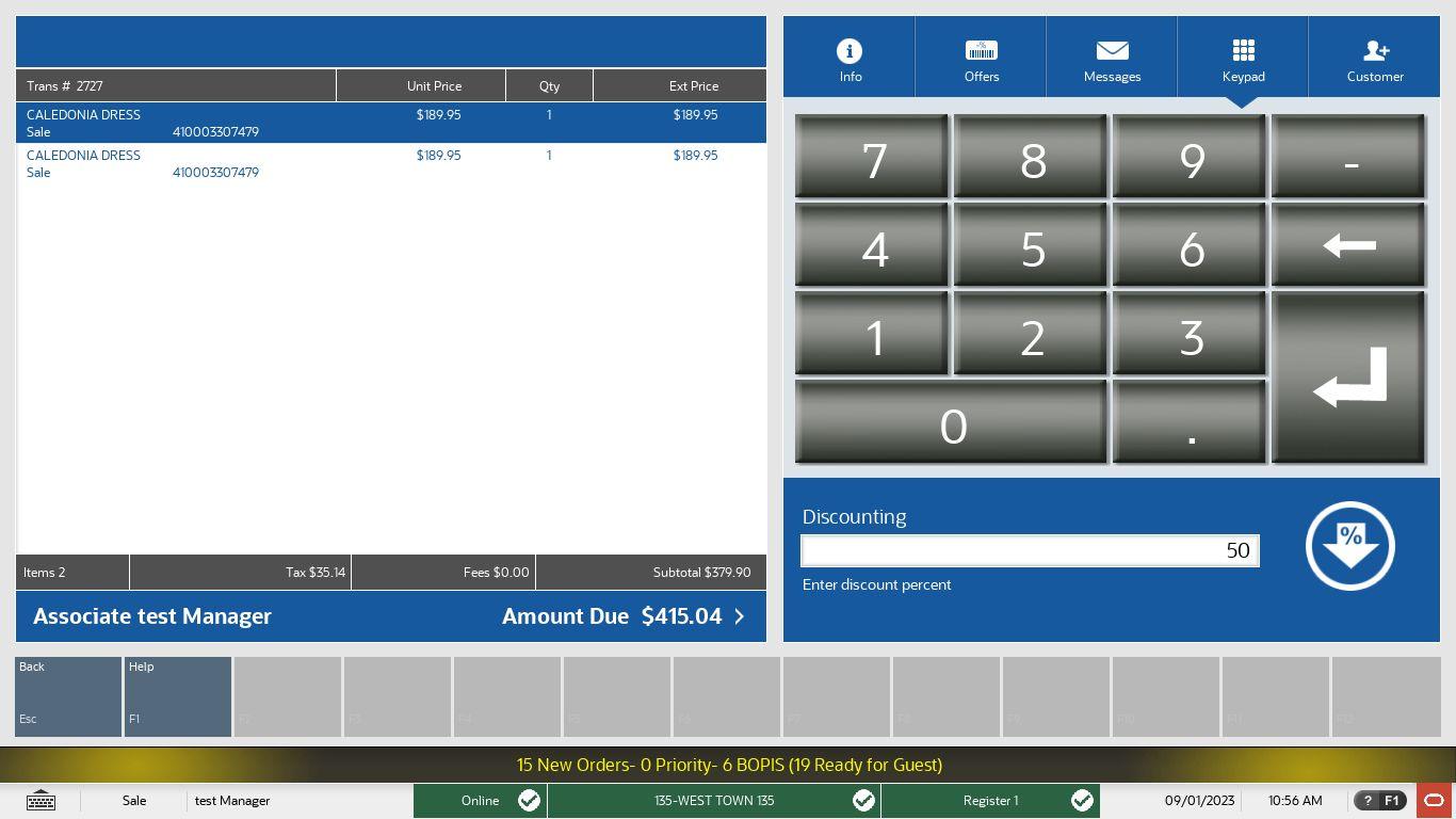 Key in the discount amount. In this instance it will be 50% off of the one dress.