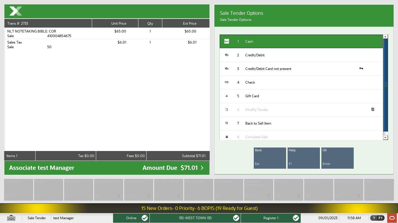 If the transaction is complete, click ADD TENDERS and choose Credit/Debit and press OK.