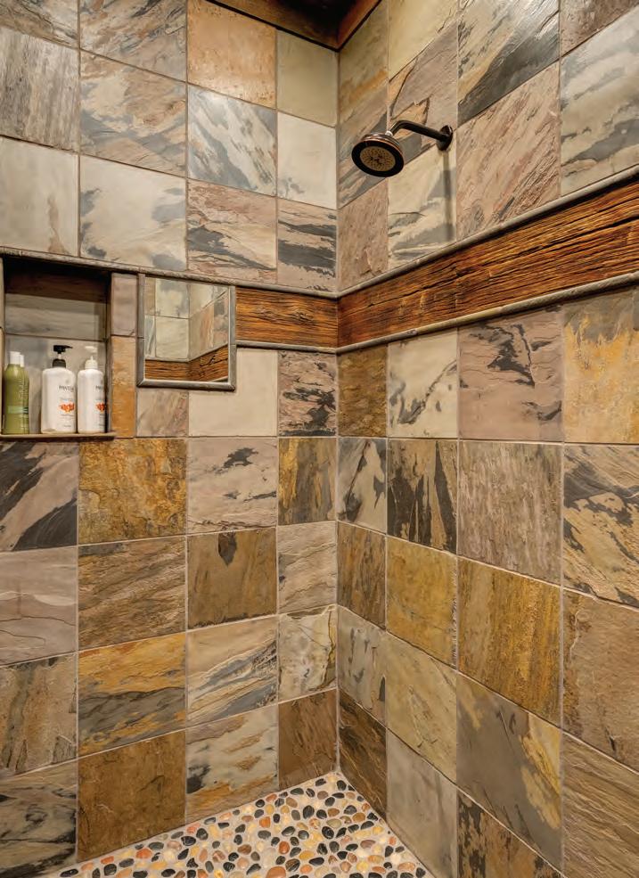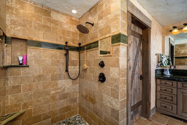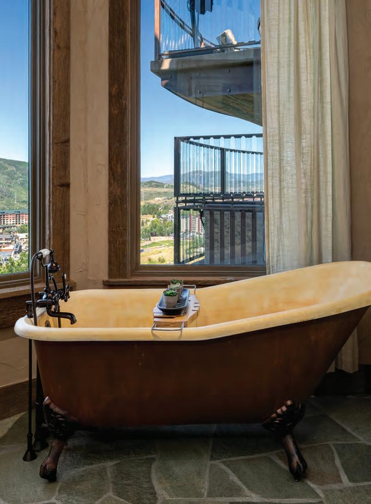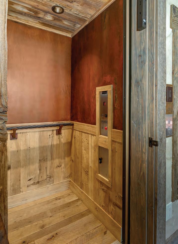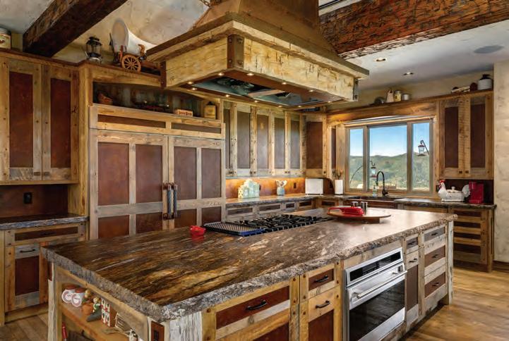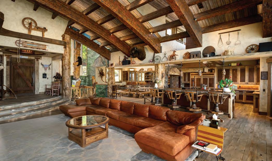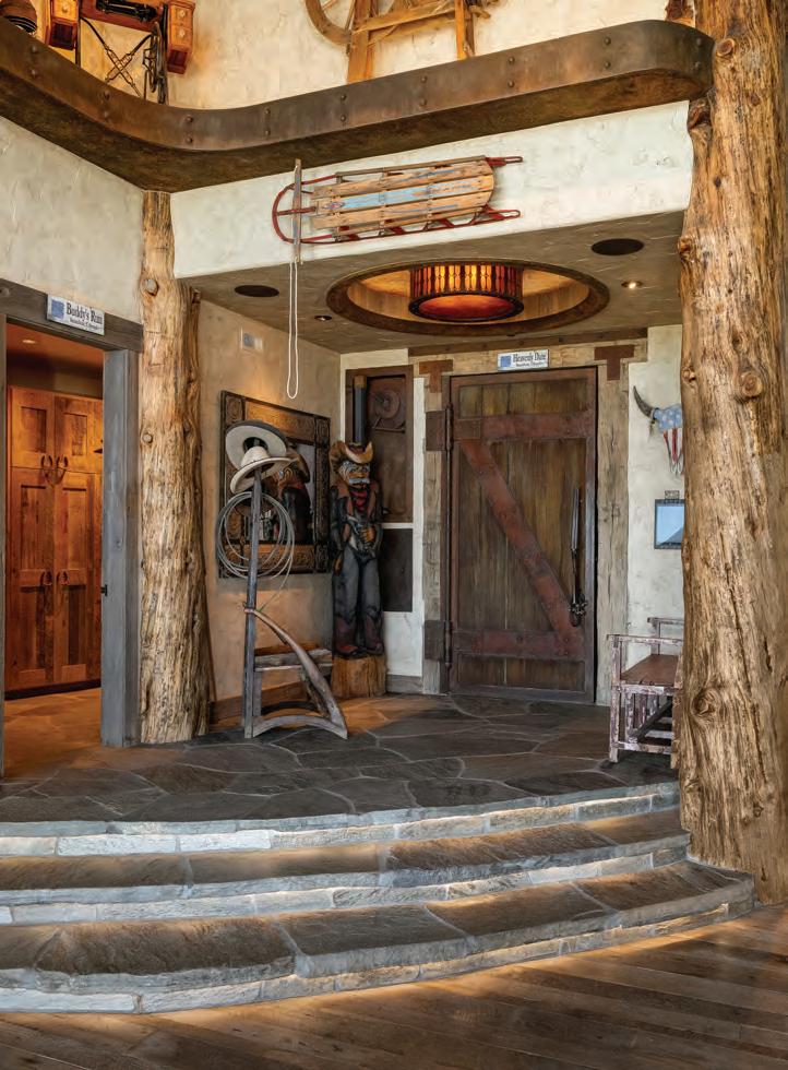 The home exudes warmth and craftsmanship that is as rich in detail as it is whimsy. 6 bedrooms and 9 baths are situated across 11,000+ SF and three levels that are conveniently serviced by an elevator and connected by a state-of-theart system, allowing for seamless control of all the smart-home functions, including central air conditioning. The main level features a generous mudroom, laundry room with ample storage, powder room, a chefs’ kitchen complete with top of the line appliances and custom finishes, dining room, a grand living room that overlooks the entire Yampa Valley and two primary suites.