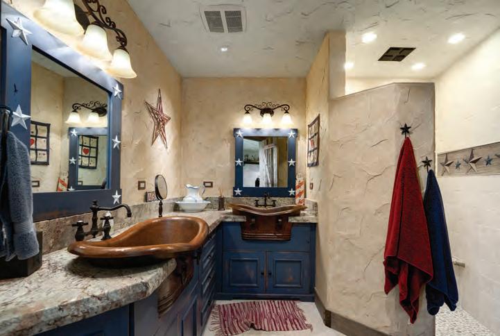 • 3 gas fireplaces in Primary Bedroom/ Bath (double-sided), Red, White & Blue Bedroom & Western Bedroom