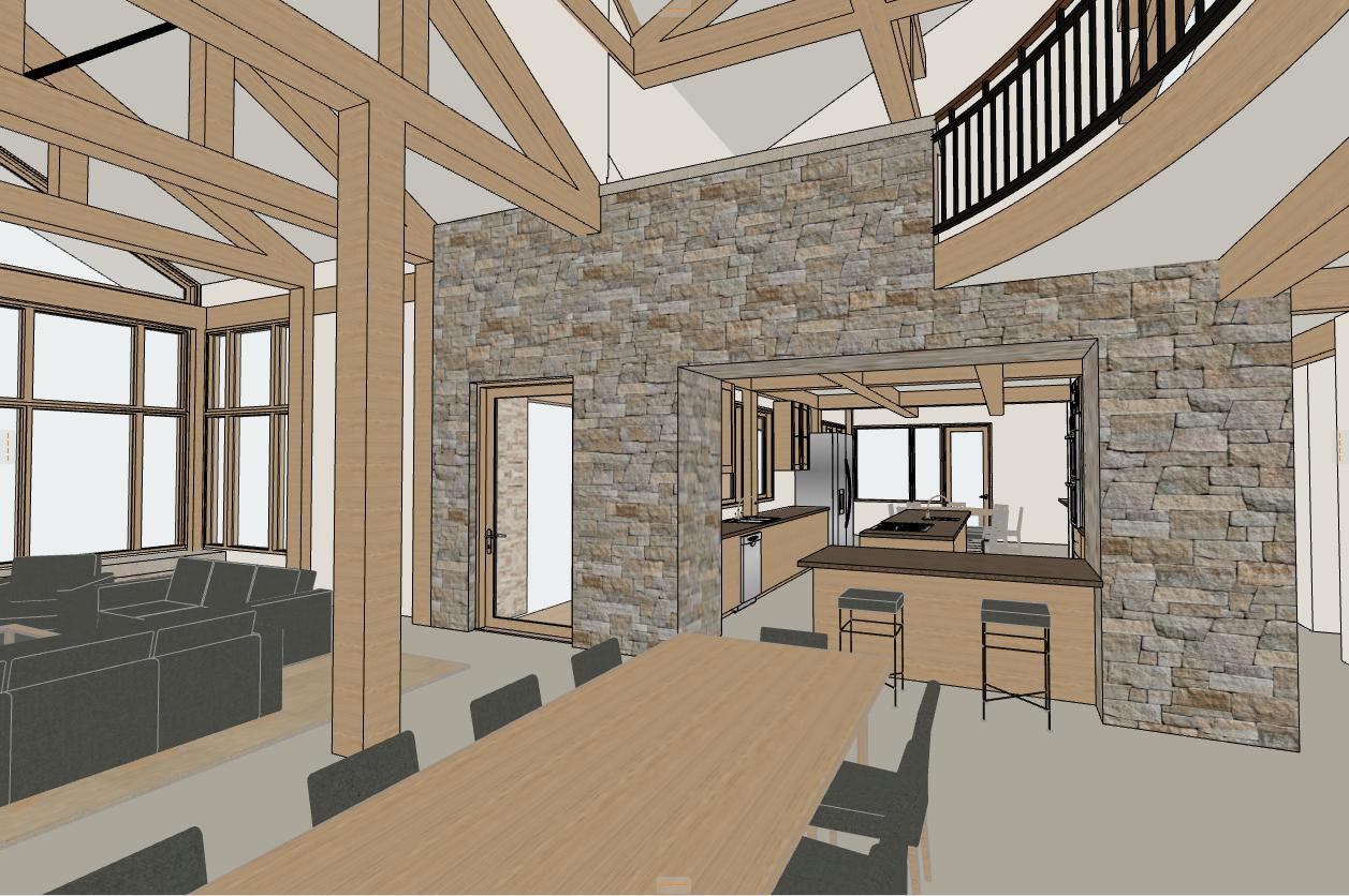 VIEW FROM KITCHEN TO DINING AND LIVING