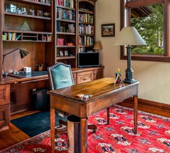 The guest wing is a thoughtfully designed retreat, balancing private spaces with inviting areas to gather. A spacious family room features custom built-ins, a media center, and custom fireplace, with two sets of glass doors and a glass wall opening directly into the solarium. A stand-alone office provides a quiet place to work or read, while a dedicated exercise room offers convenience and wellness. Accommodations include two junior primary suites with private baths and elegant finishes, ideal for extended stays, alongside two custom-designed bunk rooms that provide a playful, highcapacity option for younger guests or large family gatherings. A loft-style recreation room completes the wing, adding yet another versatile space for relaxation and entertainment.