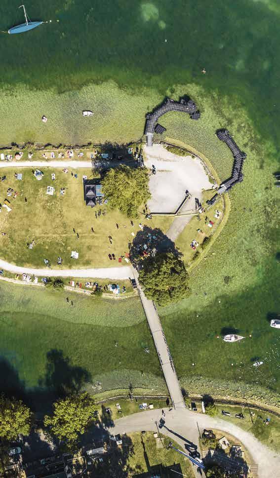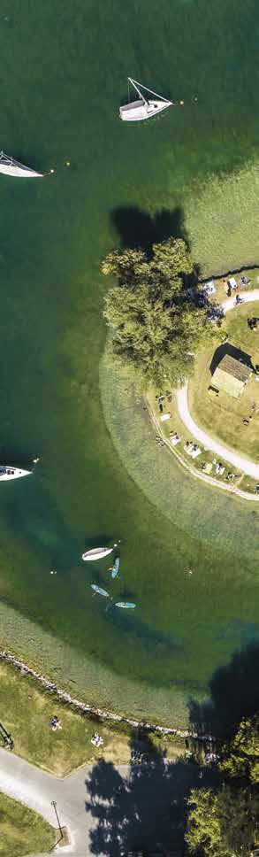 Schlafen am See Fast an jedem Schweizer See gibt es einen Campingplatz. Zu den schönsten gehören der Camping Delta in Locarno, der Campingplatz Gampelen am Neuenburgersee und jener in Silvaplana im Oberengadin.