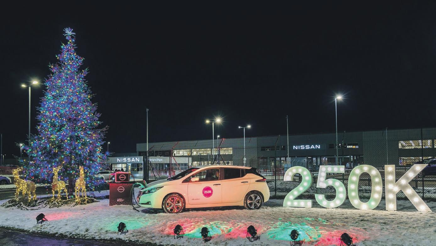 ANissan LEAF is providing the sparkle for Nissan Sunderland Plant’s Christmas display to celebrate production of 250,000 of the pioneering electric vehicle in the UK.