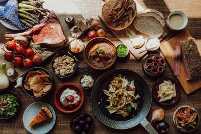 … verwöhnt hier kulinarisch mit regionalen Spezialitäten und Schmankerln aus hauseigener Produk tion. „Vom hausgebeizten und hausgeräucherten Speck bis hin zur gebeizten Bio-Lachsforelle aus Fieberbrunn und dem frischen Natursauerteigbrot von unserem Küchenchef wird alles im Haus pro duziert“, erzählt Niko Gasteiger. „Frischmilch kommt direkt von den Bichlalm-Kühen. Wir verarbeiten sie selbst zu köstlichem Frischkäse, Joghurt, Quark