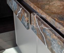 »Mit reinen Handzeichnungen wurde diese offene Wohnküche geplant und umgesetzt. Durch die Echtholzfronten in Wenge bewahrt sich der Raum –trotz der industriellen Aura mit einer Arbeitsplatte aus Schiefer und schwarzen Stahlelementen – seine Wärme und Wohnlichkeit.«