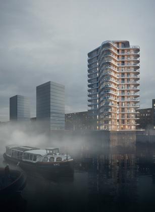 … werden in der nächsten Zukunft bereits in die Praxis umgesetzt: Die LIP Ludger Inholte Projektentwicklung, die seit vielen Jahren bei ihren Bauten auf Nachhaltigkeit setzt, realisiert in der Hamburger HafenCity am Baakenhafen den LIP Watertower (Abbildungen), einen spektakulären Wohnturm des niederländischen Star-Architekten Kees Christiaanse. Das Projekt setzt die neuesten Erkenntnisse zur Nach haltigkeit um – von Materialien bis zum laufenden Betrieb.